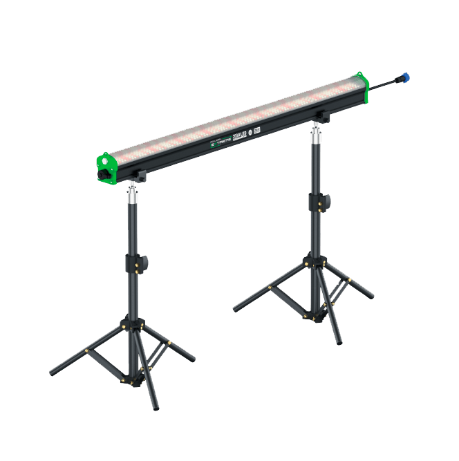 Designed as supplementary lighting. Provides targeted full-spectrum illumination across the photosynthetically active radiation (PAR) range to enhance side and under-canopy exposure. All-around plant development and optimised yield potential throughout the entire canopy.